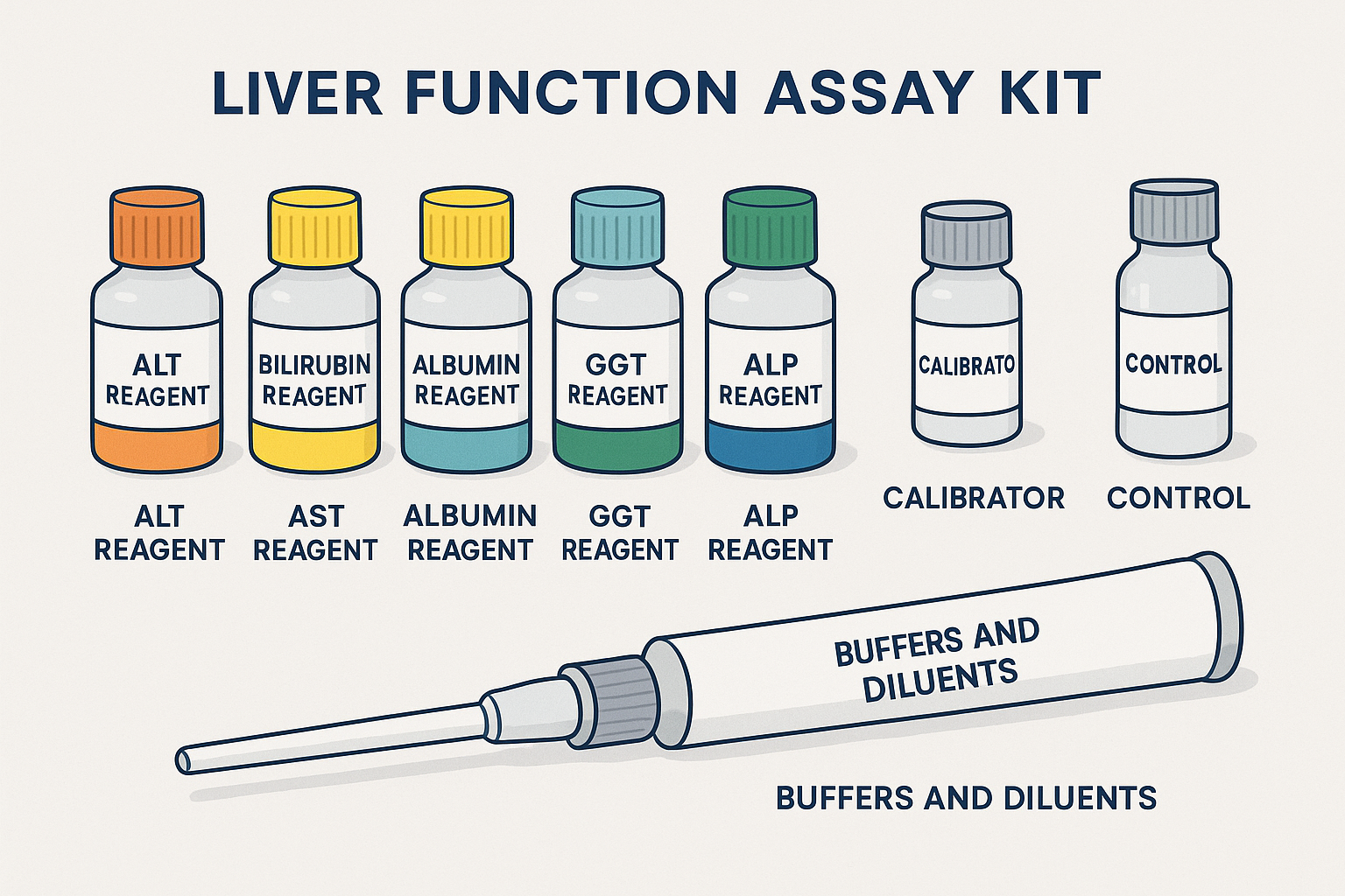 Réactifs de base inclus dans un kit de dosage de fonction hépatique
